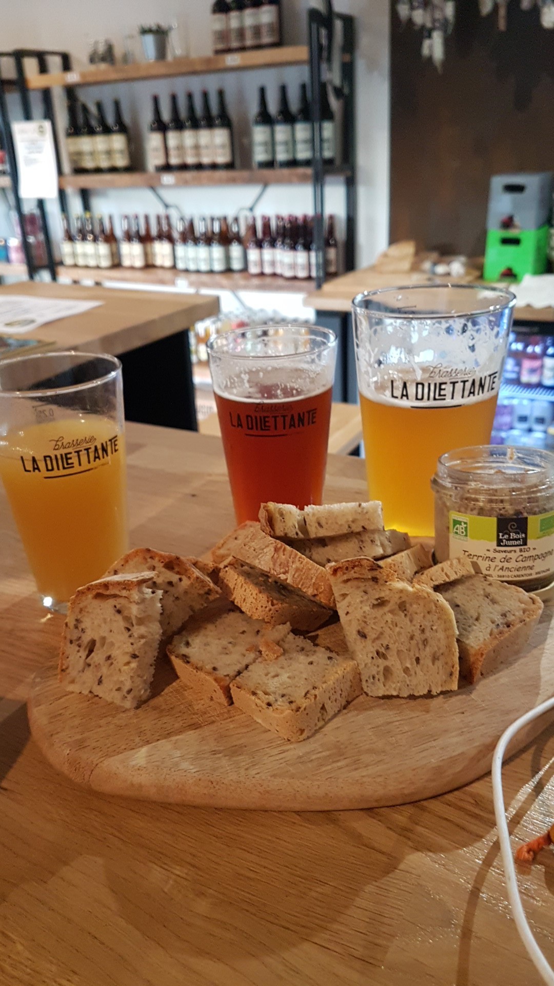 Posté le 13/08/2023 à 07:16"Comment terminer une journée de dur labeur sur une bonne note aux bons goûts houblonnés ? En s'arrêtant à la brasserie LA DILETTANTE pardi ! L'été, l'extérieur permet de jouer au palets ou de bénéficier de concerts et autres animations (food trucks...), et l'hiver, de nombreux jeux de société sont à votre disposition ! L'équipe sympa et toujours de bonne humeur, propose également de savoureux saucissons... idéal pour se retrouver entre collègues de travail dans cette zone de KERBOULARD."